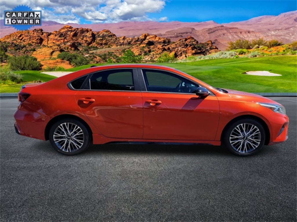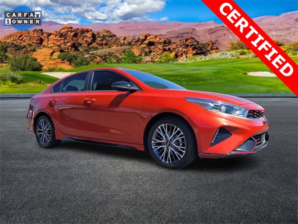 Welcome To Findlay Kia in St. George. All of our vehicles are hand picked and inspected for your peace of mind. Come see us (On the SAVINGS SIDE of the FREEWAY). This Kia Forte is equipped with the following options: GT-Line Premium Package (Electronic Parking Brake (EPB) w/Auto Hold, Forward Collision Avoidance-Assist - Cyclist, Highway Driving Assist (HDA), Navigation-Based Smart Cruise Control (NSCC), Overhead LED Front & Rear Reading Lamps, Power Sunroof, Radio: AM/FM/MP3 harman/kardon Premium Audio System, Smart Cruise Control, and Wireless Charging), 4-Wheel Disc Brakes, 6 Speakers, ABS brakes, Air Conditioning, Alloy wheels, AM/FM radio: SiriusXM, Apple CarPlay & Android Auto, Auto High-beam Headlights, Automatic temperature control, Brake assist, Bumpers: body-color, Cloth & Leatherette Seat Trim, Delay-off headlights, Driver door bin, Driver vanity mirror, Dual front impact airbags, Dual front side impact airbags, Electronic Stability Control, Emergency communication system: UVO eServices, Exterior Parking Camera Rear, Front anti-roll bar, Front Bucket Seats, Front Center Armrest, Front dual zone A/C, Front fog lights, Front reading lights, Front Sport Seats, Front wheel independent suspension, Fully automatic headlights, Heated door mirrors, Illuminated entry, Leather Shift Knob, Leather steering wheel, Low tire pressure warning, Navigation System, Occupant sensing airbag, Outside temperature display, Overhead airbag, Overhead console, Panic alarm, Passenger door bin, Passenger vanity mirror, Power door mirrors, Power steering, Power windows, Radio data system, Radio: UVO Link Audio System, Rear seat center armrest, Rear window defroster, Remote keyless entry, Security system, Speed control, Split folding rear seat, Spoiler, Sport steering wheel, Steering wheel mounted audio controls, Tachometer, Telescoping steering wheel, Tilt steering wheel, Traction control, Trip computer, Turn signal indicator mirrors, Variably intermittent wipers, and Wheels: 17" Graphite Finish Alloy.