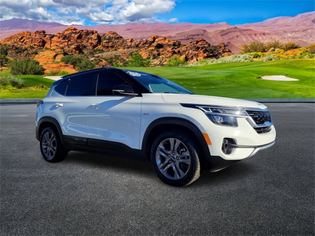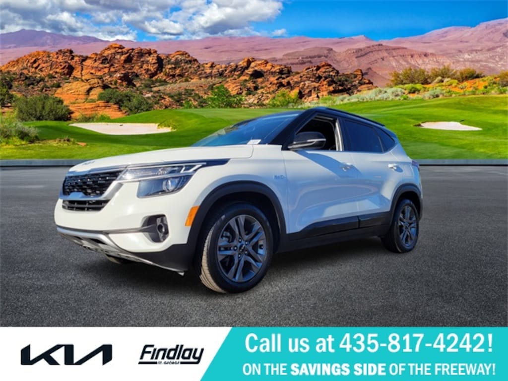 Welcome To Findlay Kia in St. George. All of our vehicles are hand picked and inspected for your peace of mind. Come see us (On the SAVINGS SIDE of the FREEWAY). This Kia Seltos is equipped with the following options: Glossy Black Door Garnish Package (Glossy Black Door Garnish), 4-Wheel Disc Brakes, 6 Speakers, 6.052 Axle Ratio, ABS brakes, Air Conditioning, Alloy wheels, AM/FM radio: SiriusXM, Apple CarPlay & Android Auto, Auto High-beam Headlights, Automatic temperature control, Brake assist, Bumpers: body-color, Cloth & Sofino Premium Leatherette Seat Trim, Delay-off headlights, Driver door bin, Driver vanity mirror, Dual front impact airbags, Dual front side impact airbags, Electronic Stability Control, Emergency communication system: 911 Connect, Exterior Parking Camera Rear, Four wheel independent suspension, Front anti-roll bar, Front Bucket Seats, Front Center Armrest, Front fog lights, Front reading lights, Fully automatic headlights, Heated door mirrors, Heated front seats, Illuminated entry, Leather Shift Knob, Low tire pressure warning, Navigation System, Occupant sensing airbag, Outside temperature display, Overhead airbag, Overhead console, Panic alarm, Passenger door bin, Passenger vanity mirror, Power door mirrors, Power steering, Power windows, Radio: AM/FM/MP3 Display Audio w/Navigation, Rear seat center armrest, Rear window defroster, Rear window wiper, Remote keyless entry, Security system, Speed control, Speed-sensing steering, Split folding rear seat, Spoiler, Steering wheel mounted audio controls, Tachometer, Telescoping steering wheel, Tilt steering wheel, Traction control, Trip computer, Turn signal indicator mirrors, Variably intermittent wipers, and Wheels: 17" Alloy w/Dark Gray Finish.