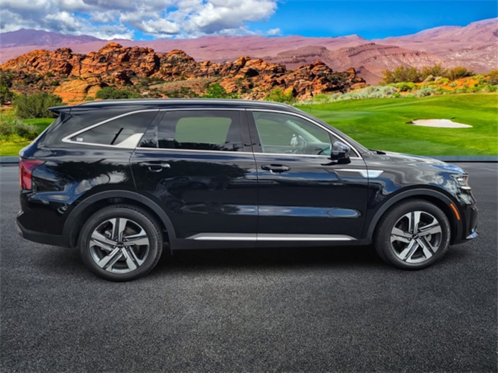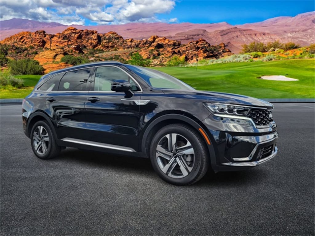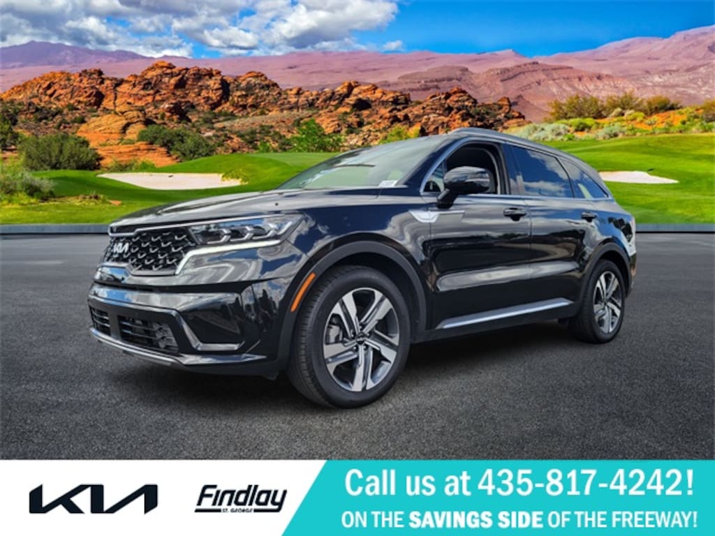 Welcome To Findlay Kia in St. George. All of our vehicles are hand picked and inspected for your peace of mind. Come see us (On the SAVINGS SIDE of the FREEWAY). This Kia Sorento Hybrid is equipped with the following options: Panoramic Sunroof Package (LED Interior Lighting and Power Sunroof w/Power Sunshade), 12 Speakers, 3rd row seats: split-bench, 4-Wheel Disc Brakes, ABS brakes, Air Conditioning, Alloy wheels, AM/FM radio: SiriusXM, Apple CarPlay & Android Auto, Auto High-beam Headlights, Auto-dimming Rear-View mirror, Automatic temperature control, Axle Ratio: 3.510, Brake assist, Bumpers: body-color, Delay-off headlights, Driver door bin, Driver vanity mirror, Dual front impact airbags, Dual front side impact airbags, Electronic Stability Control, Emergency communication system, Four wheel independent suspension, Front anti-roll bar, Front Bucket Seats, Front Center Armrest, Front dual zone A/C, Front fog lights, Front reading lights, Fully automatic headlights, Garage door transmitter: HomeLink, Heated & Ventilated Front Bucket Seats, Heated door mirrors, Heated front seats, Heated rear seats, Heated steering wheel, Illuminated entry, Knee airbag, Leather steering wheel, Low tire pressure warning, Memory seat, Navigation System, Occupant sensing airbag, Outside temperature display, Overhead airbag, Overhead console, Panic alarm, Passenger door bin, Passenger vanity mirror, Perforated Genuine Leather Seat Trim, Power door mirrors, Power driver seat, Power Liftgate, Power passenger seat, Power steering, Power windows, Radio data system, Radio: AM/FM/HD Radio/SiriusXM Audio System, Rain sensing wipers, Rear air conditioning, Rear anti-roll bar, Rear reading lights, Rear window defroster, Rear window wiper, Remote keyless entry, Roof rack: rails only, Security system, Smart Key w/ Push Button and Remote Start, Speed control, Speed-sensing steering, Split folding rear seat, Spoiler, Steering wheel mounted audio controls, Tachometer, Telescoping steering wheel, Tilt steering wheel, Traction control, Trip computer, Turn signal indicator mirrors, Variably intermittent wipers, Ventilated front seats, and Wheels: 19" Machine-Finished Alloy.