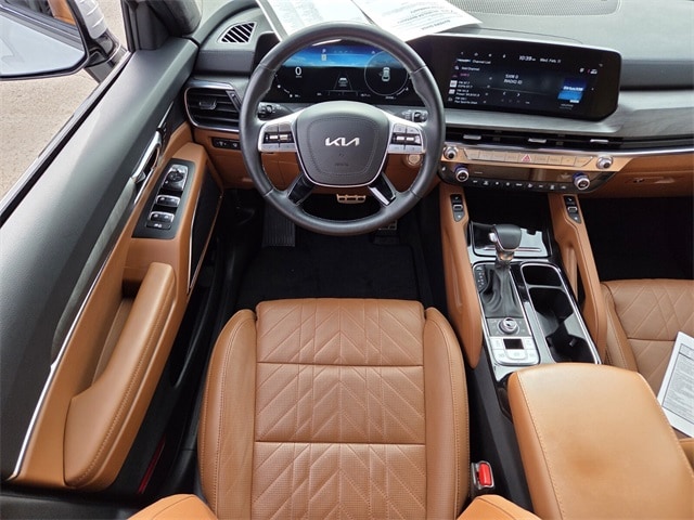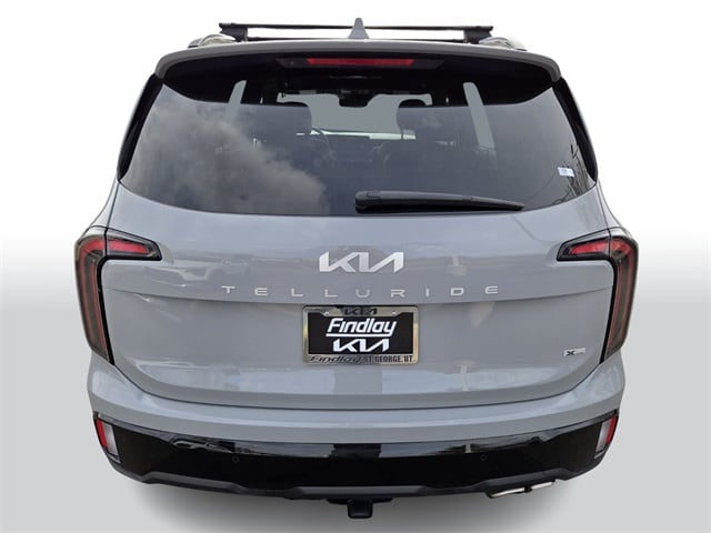 Welcome To Findlay Kia in St. George. All of our vehicles are hand picked and inspected for your peace of mind. Come see us (On the SAVINGS SIDE of the FREEWAY). This Kia Telluride is equipped with the following options: Terracotta Interior Color Package, 10 Speakers, 3rd row seats: split-bench, Air Conditioning, AM/FM radio: SiriusXM, Apple CarPlay & Android Auto, Auto High-beam Headlights, Auto-dimming Rear-View mirror, Auto-leveling suspension, Automatic temperature control, Bumpers: body-color, Cross Bars X-Line, Delay-off headlights, Electronic Stability Control, Exterior Parking Camera Rear, Four wheel independent suspension, Front Bucket Seats, Front Center Armrest, Front dual zone A/C, Front fog lights, Fully automatic headlights, harman/kardon® Speakers, Heads-Up Display, Heated & Ventilated Front Bucket Seats, Heated door mirrors, Heated rear seats, Memory seat, Navigation System, Power driver seat, Power Liftgate, Power passenger seat, Power steering, Power windows, Radio data system, Radio: AM/FM Harman Kardon Audio System, Rear audio controls, Rear window defroster, Rear window wiper, Remote keyless entry, Smart Key w/ Push Button and Remote Start, Speed control, Speed-sensing steering, Steering wheel mounted audio controls, Tachometer, Telescoping steering wheel, Tilt steering wheel, Traction control, Trip computer, Variably intermittent wipers, Ventilated rear seats, Wheels: 20" x 7.5" Black Finish X-LINE Exclusive, 3.648 Axle Ratio, 4-Wheel Disc Brakes, ABS brakes, Alloy wheels, Brake assist, Cargo Cover, Cargo Tray Seat Back, Carpet Floor Mats, Compass, Driver door bin, Driver vanity mirror, Dual front impact airbags, Dual front side impact airbags, Emergency communication system: 911 Connect, Front anti-roll bar, Front reading lights, Garage door transmitter: HomeLink, Heated front seats, Heated steering wheel, Illuminated entry, Knee airbag, Leather Shift Knob, Leather steering wheel, Low tire pressure warning, Occupant sensing airbag, Outside temperature display, Overhead airbag, Overhead console, Panic alarm, Passenger door bin, Passenger vanity mirror, Power door mirrors, Power moonroof, Rear air conditioning, Rear anti-roll bar, Rear reading lights, Rear side impact airbag, Reclining 3rd row seat, Roof rack: rails only, Security system, Split folding rear seat, Spoiler, Tow Hitch w/Harness, Turn signal indicator mirrors, and Ventilated front seats.