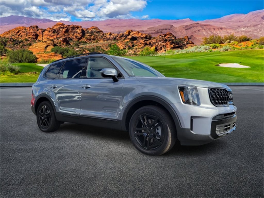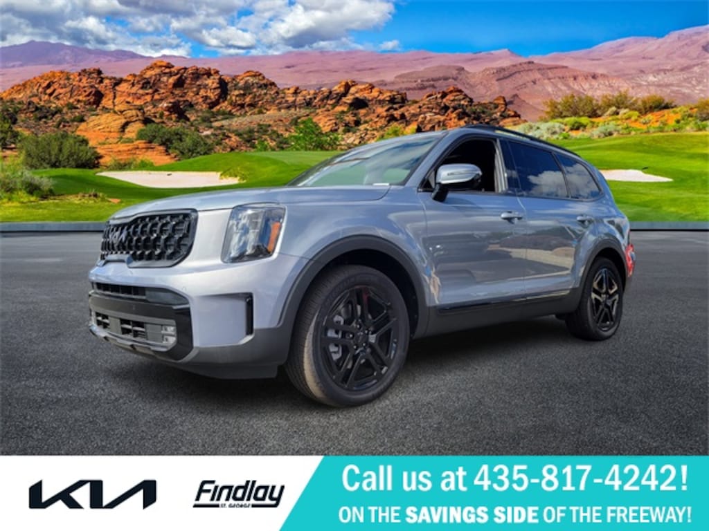 Welcome To Findlay Kia in St. George. All of our vehicles are hand picked and inspected for your peace of mind. Come see us (On the SAVINGS SIDE of the FREEWAY). This Kia Telluride is equipped with the following options: 10 Speakers, 3rd row seats: split-bench, 4-Wheel Disc Brakes, ABS brakes, Air Conditioning, Alloy wheels, AM/FM radio: SiriusXM, Apple CarPlay & Android Auto, Auto High-beam Headlights, Auto-dimming Rear-View mirror, Auto-leveling suspension, Automatic temperature control, Brake assist, Bumpers: body-color, Carpeted Floor Mats, Compass, Delay-off headlights, Driver door bin, Driver vanity mirror, Dual front impact airbags, Dual front side impact airbags, Electronic Stability Control, Emergency communication system: 911 Connect, Exterior Parking Camera Rear, Four wheel independent suspension, Front anti-roll bar, Front Bucket Seats, Front Center Armrest, Front dual zone A/C, Front fog lights, Front reading lights, Fully automatic headlights, Garage door transmitter: HomeLink, harman/kardon® Speakers, Heads-Up Display, Heated & Ventilated Front Bucket Seats, Heated door mirrors, Heated front seats, Heated rear seats, Heated steering wheel, Illuminated entry, Knee airbag, Leather Shift Knob, Leather steering wheel, Low tire pressure warning, Memory seat, Nappa Leather Seat Trim, Navigation System, Occupant sensing airbag, Outside temperature display, Overhead airbag, Overhead console, Panic alarm, Passenger door bin, Passenger vanity mirror, Power door mirrors, Power driver seat, Power Liftgate, Power moonroof, Power passenger seat, Power steering, Power windows, Radio data system, Radio: AM/FM Harman Kardon Audio System, Rain sensing wipers, Rear air conditioning, Rear anti-roll bar, Rear audio controls, Rear reading lights, Rear side impact airbag, Rear window defroster, Rear window wiper, Reclining 3rd row seat, Remote keyless entry, Security system, Speed control, Speed-sensing steering, Split folding rear seat, Spoiler, Steering wheel mounted audio controls, Tachometer, Telescoping steering wheel, Tilt steering wheel, Traction control, Trip computer, Turn signal indicator mirrors, Variably intermittent wipers, Ventilated front seats, Ventilated rear seats, and Wheels: 20" x 7.5" Black Finish X-LINE Exclusive.