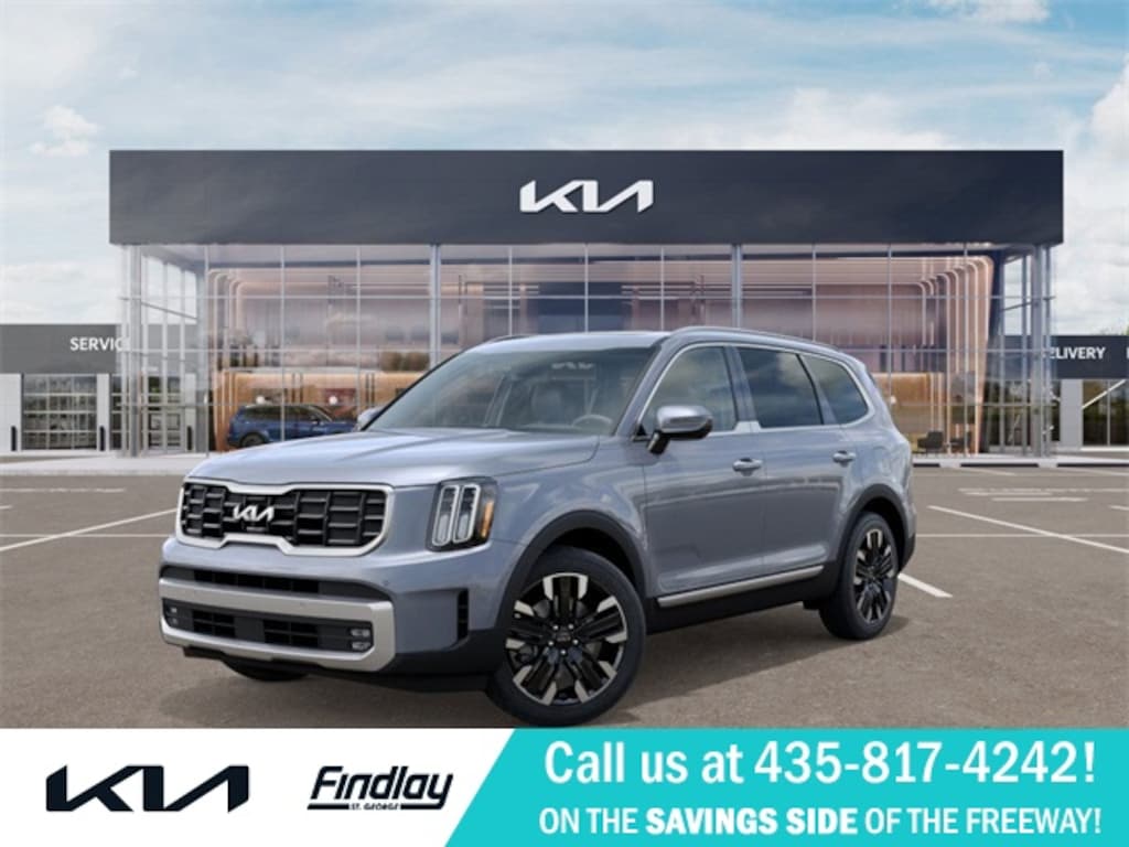 Welcome To Findlay Kia in St. George. Come see us (On the SAVINGS SIDE of the FREEWAY). This Kia Telluride is equipped with the following options: 10 Speakers, 3rd row seats: split-bench, 4-Wheel Disc Brakes, ABS brakes, Air Conditioning, Alloy wheels, AM/FM radio: SiriusXM, Apple CarPlay & Android Auto, Auto High-beam Headlights, Auto-dimming Rear-View mirror, Auto-leveling suspension, Automatic temperature control, Brake assist, Bumpers: body-color, Compass, Delay-off headlights, Driver door bin, Driver vanity mirror, Dual front impact airbags, Dual front side impact airbags, Electronic Stability Control, Emergency communication system: 911 Connect, Exterior Parking Camera Rear, Four wheel independent suspension, Front anti-roll bar, Front Bucket Seats, Front Center Armrest, Front dual zone A/C, Front fog lights, Front reading lights, Fully automatic headlights, Garage door transmitter: HomeLink, harman/kardon® Speakers, Heads-Up Display, Heated & Ventilated Front Bucket Seats, Heated door mirrors, Heated front seats, Heated rear seats, Heated steering wheel, Illuminated entry, Knee airbag, Leather Shift Knob, Leather steering wheel, Low tire pressure warning, Memory seat, Nappa Leather Seat Trim, Navigation System, Occupant sensing airbag, Outside temperature display, Overhead airbag, Overhead console, Panic alarm, Passenger door bin, Passenger vanity mirror, Power door mirrors, Power driver seat, Power Liftgate, Power moonroof, Power passenger seat, Power steering, Power windows, Radio data system, Radio: AM/FM Harman Kardon Audio System, Rain sensing wipers, Rear air conditioning, Rear anti-roll bar, Rear audio controls, Rear reading lights, Rear side impact airbag, Rear window defroster, Rear window wiper, Reclining 3rd row seat, Remote keyless entry, Security system, Speed control, Speed-sensing steering, Split folding rear seat, Spoiler, Steering wheel mounted audio controls, Tachometer, Telescoping steering wheel, Tilt steering wheel, Traction control, Trip computer, Turn signal indicator mirrors, Variably intermittent wipers, Ventilated front seats, Ventilated rear seats, and Wheels: 20" x 7.5" Black Finish.