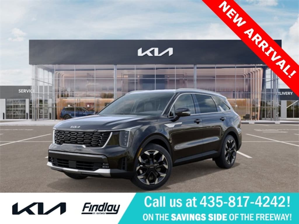 Welcome To Findlay Kia in St. George. Come see us (On the SAVINGS SIDE of the FREEWAY). This Kia Sorento is equipped with the following options: 3rd row seats: split-bench, 4-Wheel Disc Brakes, 6 Speakers, ABS brakes, Air Conditioning, Alloy wheels, AM/FM radio: SiriusXM, Apple CarPlay & Android Auto, Auto High-beam Headlights, Auto-dimming Rear-View mirror, Automatic temperature control, Brake assist, Bumpers: body-color, Carpeted Floor Mats, Delay-off headlights, Driver door bin, Driver vanity mirror, Dual front impact airbags, Dual front side impact airbags, Electronic Stability Control, Emergency communication system: 911 Connect, Exterior Parking Camera Rear, Four wheel independent suspension, Front anti-roll bar, Front Bucket Seats, Front Center Armrest, Front dual zone A/C, Front fog lights, Front reading lights, Fully automatic headlights, Heated door mirrors, Heated Front Bucket Seats, Heated front seats, Illuminated entry, Knee airbag, Leather Shift Knob, Leather steering wheel, Low tire pressure warning, Navigation System, Occupant sensing airbag, Outside temperature display, Overhead airbag, Overhead console, Panic alarm, Passenger door bin, Passenger vanity mirror, Power door mirrors, Power driver seat, Power Liftgate, Power passenger seat, Power steering, Power windows, Radio data system, Radio: AM/FM Standard Sound System, Rear anti-roll bar, Rear reading lights, Rear seat center armrest, Rear side impact airbag, Rear window defroster, Rear window wiper, Remote keyless entry, Security system, Speed control, Speed-sensing steering, Split folding rear seat, Spoiler, Steering wheel mounted audio controls, SynTex Artificial Leather Seat Trim, Tachometer, Telescoping steering wheel, Tilt steering wheel, Traction control, Trip computer, Turn signal indicator mirrors, Variably intermittent wipers, and Wheels: 20" Machine-Finished Gloss Black Alloy. 20/27 City/Highway MPG