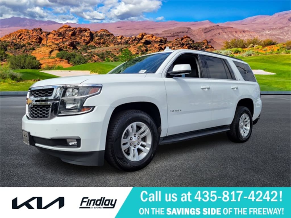 Welcome To Findlay Kia in St. George. All of our vehicles are hand picked and inspected for your peace of mind. Come see us (On the SAVINGS SIDE of the FREEWAY). This Chevrolet Tahoe is equipped with the following options: Enhanced Driver Alert Package (Y86) (Automatic Emergency Braking, Forward Collision Alert, IntelliBeam Headlamps, and Lane Keep Assist w/Lane Departure Warning), License Plate Front Mounting Package, Luxury Package (2nd Row Pwr Release 60/40 Split Folding Bench Seat, 3rd Row 60/40 Power Fold Split-Bench, Extended-Range Remote Keyless Entry, Fog Lamps, Front & Rear Park Assist, Hands Free Power Liftgate, Heated 2nd Row Outboard Seats, Heated Leather Wrapped Steering Wheel, Lane Change Alert w/Side Blind Zone Alert, Memory Settings, Passive Entry System, Power Tilt & Telescopic Steering Column w/Memory, Power-Folding Heated Outside Mirrors, Push Button Keyless Start, and Rear Cross Traffic Alert), Preferred Equipment Group 1LT (1st & 2nd Row Color-Keyed Carpeted Floor Mats, 2nd Row 60/40 Split-Folding Manual Bench, 3rd Row Manual 60/40 Split-Folding Fold Flat Bench, 4-Wheel Antilock Disc Brakes w/Brake Assist, 5 12-Volt Auxiliary Power Outlets, Auto-Dimming Inside Rear-View Mirror, Black Assist Steps, Bose Premium 9-Speaker System, Cargo Net, Color-Keyed Carpeting Floor Covering, Driver Inboard & Front Passenger Airbags, Electronic Cruise Control w/Set & Resume Speed, Floor Console, Front Passenger 6-Way Power Seat Adjuster, Leather-Wrapped Steering Wheel, Power Liftgate, Power-Adjustable Accelerator & Brake Pedals, Rear Park Assist w/Audible Warning, Remote Vehicle Start, Roof-Mounted Luggage Rack Side Rails, SiriusXM Radio, and Universal Home Remote), Premium Smooth Ride Suspension Package, Sun, Entertainment & Destinations Package (Bluetooth for Phone, HD Radio, Power Sunroof, Radio: Chevrolet Infotainment AM/FM Stereo w/Nav, Rear Seat Blu-Ray/DVD Entertainment System, Single-Slot CD/MP3 Player, and SiriusXM NavTraffic), 18" x 8.5" Aluminum Wheels, 3.08 Rear Axle Ratio, 3rd row seats: split-bench, 4-Wheel Disc Brakes, 9 Speakers, ABS brakes, Adjustable pedals, Air Conditioning, Alloy wheels, AM/FM radio: SiriusXM, Apple CarPlay/Android Auto, Auto High-beam Headlights, Auto-dimming Rear-View mirror, Automatic temperature control, Brake assist, Bumpers: body-color, CD player, Compass, Delay-off headlights, Driver door bin, Driver vanity mirror, Dual front impact airbags, Dual front side impact airbags, Electronic Stability Control, Emergency communication system: OnStar and Chevrolet connected services capable, Exterior Parking Camera Rear, Front anti-roll bar, Front Bucket Seats, Front Center Armrest, Front dual zone A/C, Front Heated Reclining Bucket Seats, Front reading lights, Front wheel independent suspension, Fully automatic headlights, Garage door transmitter, Heated door mirrors, Heated front seats, Illuminated entry, Leather steering wheel, Leather-Appointed Seat Trim, Low tire pressure warning, Memory seat, Occupant sensing airbag, Outside temperature display, Overhead airbag, Overhead console, Panic alarm, Passenger door bin, Passenger vanity mirror, Pedal memory, Power door mirrors, Power driver seat, Power passenger seat, Power steering, Power windows, Premium audio system: Chevrolet MyLink, Radio: Chevrolet Infotainment AM/FM Stereo, Rain sensing wipers, Rear air conditioning, Rear anti-roll bar, Rear reading lights, Rear seat center armrest, Rear window defroster, Rear window wiper, Remote keyless entry, Security system, Speed control, Speed-sensing steering, Split folding rear seat, Spoiler, Steering wheel mounted audio controls, Tachometer, Telescoping steering wheel, Tilt steering wheel, Traction control, Trip computer, Variably intermittent wipers, and Voltmeter.