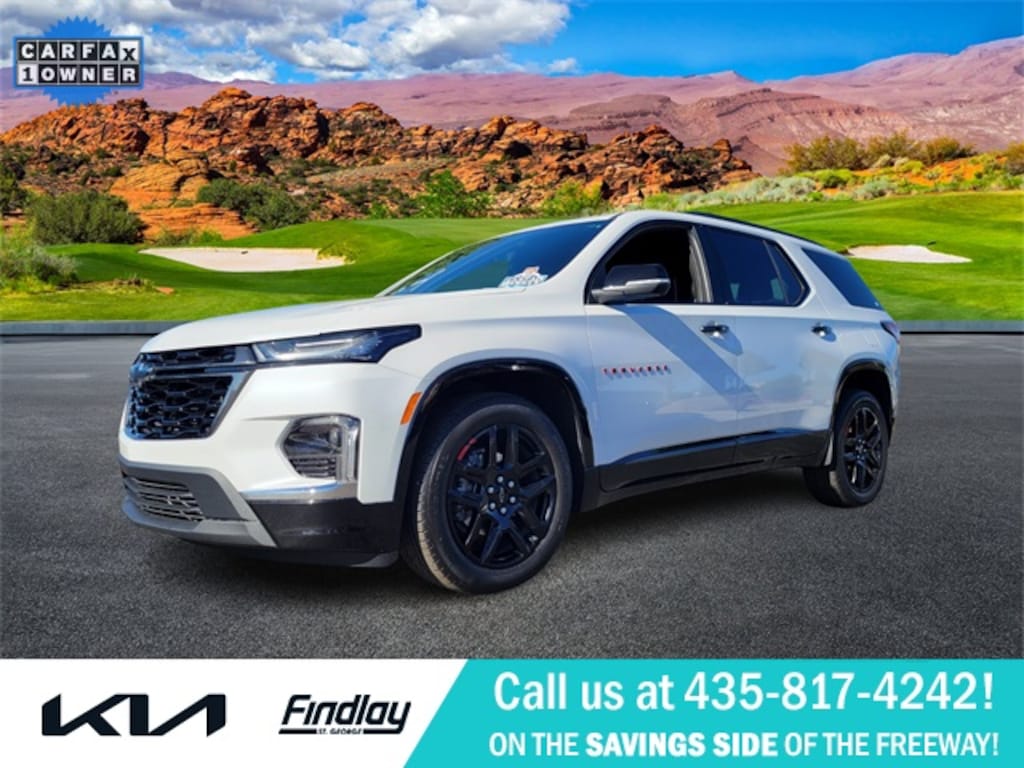 Welcome To Findlay Kia in St. George. All of our vehicles are hand picked and inspected for your peace of mind. Come see us (On the SAVINGS SIDE of the FREEWAY). This Chevrolet Traverse is equipped with the following options: Floor Liner Package (LPO) (1st & 2nd Row All-Weather Floor Liner (LPO), 3rd Row All-Weather Floor Liner (LPO), and Integrated Cargo Liner (LPO)), Front License Plate Bracket Mounting Package, Preferred Equipment Group 1LZ (Heated 2nd Row Outboard Position Seats, Heated Driver & Front Passenger Seats, and Ventilated Driver & Front Passenger Seats), Redline Edition (Black Bowtie, Black Door Handles, Black Roof Rails, Dual SkyScape 2-Panel Power Sunroof, Ornamentation, Redline Accent Decals (LPO), and Wheels: 20" Gloss Black Painted Alum w/Red Stripes), 10 Speakers, 3.49 Axle Ratio, 3rd row seats: split-bench, 4-Wheel Disc Brakes, 6-Way Power Front Passenger Seat, 8-Way Power Driver Seat Adjuster, ABS brakes, Air Conditioning, Alloy wheels, AM/FM radio: SiriusXM with 360L, Apple CarPlay/Android Auto, Auto High-beam Headlights, Auto-dimming door mirrors, Auto-dimming Rear-View mirror, Automatic temperature control, Bose Premium 10-Speaker Audio System Feature, Brake assist, Bumpers: body-color, Compass, Delay-off headlights, Driver door bin, Driver vanity mirror, Dual front impact airbags, Dual front side impact airbags, Electronic Stability Control, Emergency communication system, Exterior Parking Camera Rear, Four wheel independent suspension, Front anti-roll bar, Front Bucket Seats, Front Center Armrest, Front dual zone A/C, Front Passenger 2-Way Power Lumbar, Front reading lights, Fully automatic headlights, Garage door transmitter, Heated door mirrors, Heated front seats, Heated rear seats, Heated steering wheel, Illuminated entry, Leather steering wheel, Low tire pressure warning, Memory seat, Navigation System, Occupant sensing airbag, Outside temperature display, Overhead airbag, Overhead console, Panic alarm, Passenger door bin, Passenger vanity mirror, Perforated Leather-Appointed Seat Trim, Power door mirrors, Power Driver Lumbar Control, Power driver seat, Power Liftgate, Power passenger seat, Power steering, Power windows, Premium audio system: Chevrolet Infotainment 3 Plus, Radio data system, Radio: Chevrolet Infotainment 3 Plus System w/Navi, Rear air conditioning, Rear anti-roll bar, Rear reading lights, Rear window defroster, Rear window wiper, Remote keyless entry, Security system, SiriusXM w/360L, Speed control, Speed-sensing steering, Spoiler, Steering wheel memory, Steering wheel mounted audio controls, Tachometer, Telescoping steering wheel, Tilt steering wheel, Traction control, Trip computer, Turn signal indicator mirrors, Variably intermittent wipers, Ventilated front seats, Voltmeter, and Wheels: 20" Metallic Machined-Face Aluminum.