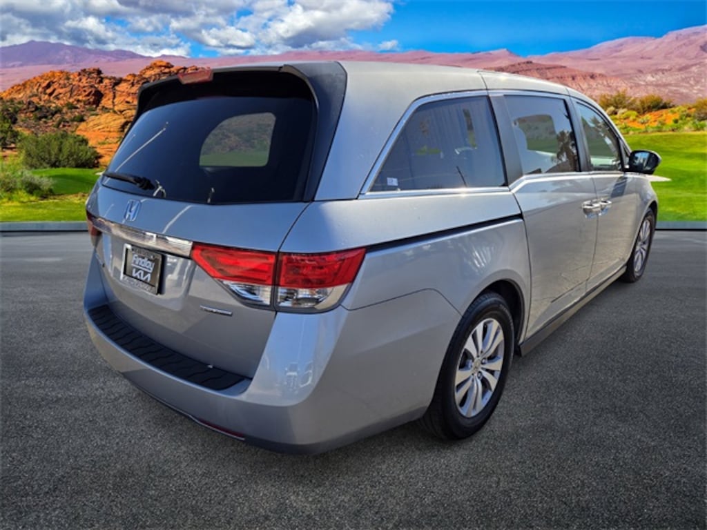 Welcome To Findlay Kia in St. George. All of our vehicles are hand picked and inspected for your peace of mind. Come see us (On the SAVINGS SIDE of the FREEWAY). This Honda Odyssey is equipped with the following options: 17" x 7" Alloy Wheels, 3rd row seats: split-bench, A/V remote, ABS brakes, AM/FM radio: SiriusXM, Automatic temperature control, CD player, Compass, Exterior Parking Camera Rear, Fully automatic headlights, Garage door transmitter: HomeLink, Headphones, Heated door mirrors, Low tire pressure warning, Power door mirrors, Power driver seat, Radio: 270-Watt AM/FM/CD Audio System w/7 Speakers, Steering wheel mounted audio controls, 4-Wheel Disc Brakes, 4.25 Axle Ratio, 7 Speakers, Air Conditioning, Alloy wheels, Anti-whiplash front head restraints, Brake assist, Bumpers: body-color, Cloth Seat Trim, Delay-off headlights, Driver door bin, Driver vanity mirror, Driver's Seat Mounted Armrest, Dual front impact airbags, Dual front side impact airbags, DVD-Audio, Electronic Stability Control, Four wheel independent suspension, Front anti-roll bar, Front Bucket Seats, Front dual zone A/C, Front reading lights, Illuminated entry, Occupant sensing airbag, Outside temperature display, Overhead airbag, Overhead console, Panic alarm, Passenger door bin, Passenger seat mounted armrest, Passenger vanity mirror, Power passenger seat, Power steering, Power windows, Radio data system, Rear air conditioning, Rear reading lights, Rear seat center armrest, Rear window defroster, Rear window wiper, Reclining 3rd row seat, Remote keyless entry, Security system, Speed control, Speed-sensing steering, Speed-Sensitive Wipers, Split folding rear seat, Spoiler, Tachometer, Telescoping steering wheel, Tilt steering wheel, Traction control, Trip computer, and Variably intermittent wipers.