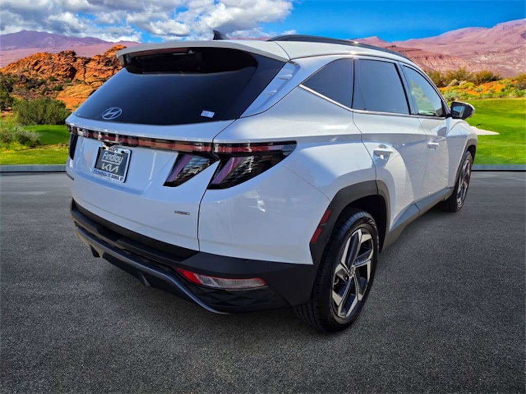 Welcome To Findlay Kia in St. George. All of our vehicles are hand picked and inspected for your peace of mind. Come see us (On the SAVINGS SIDE of the FREEWAY). This Hyundai Tucson is equipped with the following options: Option Group 01, 3.648 Axle Ratio, 4-Wheel Disc Brakes, 8 Speakers, ABS brakes, Air Conditioning, Alloy wheels, AM/FM radio: SiriusXM, Apple CarPlay & Android Auto, Auto High-beam Headlights, Auto-dimming Rear-View mirror, Automatic temperature control, Brake assist, Bumpers: body-color, Cargo Tray, Carpeted Floor Mats, Delay-off headlights, Driver door bin, Driver vanity mirror, Dual front impact airbags, Dual front side impact airbags, Electronic Stability Control, Emergency communication system: Blue Link Connected Car Service (3-year complimentary subscription), Four wheel independent suspension, Front anti-roll bar, Front Bucket Seats, Front Center Armrest, Front dual zone A/C, Front reading lights, Fully automatic headlights, Garage door transmitter: HomeLink, Heated & Ventilated Front Bucket Seats, Heated door mirrors, Heated front seats, Heated rear seats, Heated steering wheel, Illuminated entry, Leather Seat Trim, Low tire pressure warning, Memory seat, Navigation System, Occupant sensing airbag, Outside temperature display, Overhead airbag, Overhead console, Panic alarm, Passenger door bin, Passenger vanity mirror, Power door mirrors, Power driver seat, Power Liftgate, Power moonroof, Power passenger seat, Power steering, Power windows, Radio data system, Radio: Bose Premium w/AM/FM/HD/SiriusXM Audio System, Rain sensing wipers, Rear anti-roll bar, Rear reading lights, Rear seat center armrest, Rear window defroster, Rear window wiper, Remote keyless entry, Roof rack: rails only, Security system, Speed control, Split folding rear seat, Spoiler, Steering wheel mounted audio controls, Tachometer, Telescoping steering wheel, Tilt steering wheel, Traction control, Trip computer, Turn signal indicator mirrors, Variably intermittent wipers, Ventilated front seats, and Wheels: 19" x 7.5J" Machine-Face Finish Alloy.
