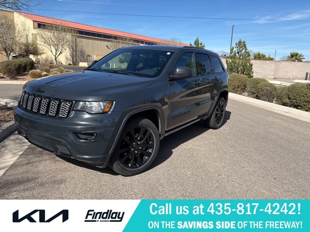 Welcome To Findlay Kia in St. George. All of our vehicles are hand picked and inspected for your peace of mind. Come see us (On the SAVINGS SIDE of the FREEWAY). This Jeep Grand Cherokee is equipped with the following options: Altitude IV Package, Quick Order Package 2BZ Altitude (1-Year SiriusXM Guardian Trial, 1-Year SiriusXM Radio Service, 5-Year SiriusXM Traffic Service, 5-Year SiriusXM Travel Link Service, 8.4" Touchscreen Display, Altitude Grille, Apple CarPlay, Auto-Dimming Rear-View Mirror, Black Suede Seats w/Black Stitching, Body Color Claddings, Body Color Fascia, Body Color Shark Fin Antenna, Dark Day Light Opening Moldings, Dark Headlamp Bezel Finish, Dark Lens Taillamps, Delete Laredo Badge, For Details Visit DriveUconnect.com, Front Accent/Body Color Fascia, Gloss Black Rear Fascia Applique, Google Android Auto, GPS Antenna Input, GPS Navigation, HD Radio, Integrated Voice Command w/Bluetooth, Jeep Black Gloss Badging, Power 4-Way Driver Lumbar Adjust, Power 8-Way Driver/Manual Passenger Seat, Radio: Uconnect 4C Nav w/8.4" Display, Rear Accent/Body Color Fascia, Rear Fascia Black MIC Step Pad, Single Exhaust w/Bright Tip, SiriusXM Satellite Radio, SiriusXM Traffic Plus, SiriusXM Travel Link, Steering Wheel Mounted Audio Controls, USB Host Flip, and Wheels: 20" x 8.0" Gloss Black Aluminum), Security & Convenience Group (115V Auxiliary Power Outlet, Power Liftgate, Security Alarm, and Universal Garage Door Opener), Air Conditioning, Apple CarPlay/Android Auto, Automatic temperature control, Delay-off headlights, Four wheel independent suspension, Front Bucket Seats, Front Center Armrest w/Storage, Front dual zone A/C, Front fog lights, Fully automatic headlights, Normal Duty Suspension, Outside temperature display, ParkView Rear Back-Up Camera, Power steering, Power windows, Rear window wiper, Speed control, Split folding rear seat, Tachometer, Telescoping steering wheel, Tilt steering wheel, Trip computer, Variably intermittent wipers, 3.45 Rear Axle Ratio, 4-Wheel Disc Brakes, 6 Speakers, ABS brakes, Alloy wheels, AM/FM radio, Anti-whiplash front head restraints, Brake assist, Bumpers: body-color, Cargo Compartment Cover, Cloth Bucket Seats, Compass, Driver door bin, Driver vanity mirror, Dual front impact airbags, Dual front side impact airbags, Electronic Stability Control, Front anti-roll bar, Front License Plate Bracket, Front reading lights, Heated door mirrors, Illuminated entry, Knee airbag, Leather Shift Knob, Low tire pressure warning, Manufacturer's Statement of Origin, Occupant sensing airbag, Overhead airbag, Overhead console, Panic alarm, Passenger door bin, Passenger vanity mirror, Power door mirrors, Radio data system, Radio: Uconnect 4 w/7" Display, Rear anti-roll bar, Rear reading lights, Rear seat center armrest, Rear window defroster, Remote keyless entry, Speed-Sensitive Wipers, Spoiler, Steering wheel mounted audio controls, Traction control, and Wheels: 17" x 8.0" Silver AluminuM.