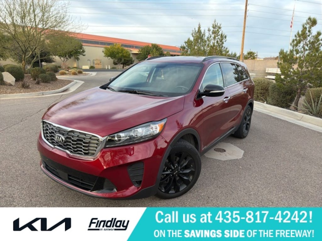 Welcome To Findlay Kia in St. George. All of our vehicles are hand picked and inspected for your peace of mind. Come see us (On the SAVINGS SIDE of the FREEWAY). This Kia Sorento is equipped with the following options: 3.51 Axle Ratio, 3rd row seats: split-bench, 4-Wheel Disc Brakes, 6 Speakers, ABS brakes, Air Conditioning, Alloy wheels, AM/FM radio, Apple CarPlay & Android Auto, Automatic temperature control, Brake assist, Bumpers: body-color, Carpeted Floor Mats (7-Passenger), Delay-off headlights, Driver door bin, Driver vanity mirror, Dual front impact airbags, Dual front side impact airbags, Electronic Stability Control, Exterior Parking Camera Rear, Four wheel independent suspension, Front anti-roll bar, Front Bucket Seats, Front Center Armrest, Front dual zone A/C, Front reading lights, Fully automatic headlights, Heated door mirrors, Heated Front Bucket Seats, Heated front seats, Illuminated entry, Leather Shift Knob, Leather steering wheel, Low tire pressure warning, Occupant sensing airbag, Outside temperature display, Overhead airbag, Overhead console, Panic alarm, Passenger door bin, Passenger vanity mirror, Power door mirrors, Power driver seat, Power steering, Power windows, Radio data system, Radio: AM/FM/MP3 Audio System, Rear air conditioning, Rear anti-roll bar, Rear Parking Sensors, Rear seat center armrest, Rear window defroster, Rear window wiper, Remote keyless entry, Roof rack: rails only, Security system, Speed control, Speed-sensing steering, Split folding rear seat, Spoiler, Steering wheel mounted audio controls, Tachometer, Telescoping steering wheel, Tilt steering wheel, Traction control, Trip computer, Turn signal indicator mirrors, Variably intermittent wipers, Wheels: 19" x 7.5" Sport Black Alloy, and YES Essentials Cloth Seat Trim.