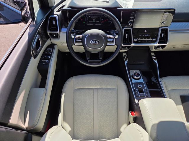 Welcome To Findlay Kia in St. George. All of our vehicles are hand picked and inspected for your peace of mind. Come see us (On the SAVINGS SIDE of the FREEWAY). This Kia Sorento Hybrid is equipped with the following options: 6 Speakers, Air Conditioning, AM/FM radio: SiriusXM, Apple CarPlay & Android Auto, Automatic temperature control, Brake assist, Delay-off headlights, Electronic Stability Control, Exterior Parking Camera Rear, Four wheel independent suspension, Front Bucket Seats, Front Center Armrest, Front dual zone A/C, Heated Front Bucket Seats, Power driver seat, Power steering, Power windows, Rear window wiper, Remote keyless entry, Speed control, Speed-sensing steering, Split folding rear seat, Steering wheel mounted audio controls, Tachometer, Telescoping steering wheel, Tilt steering wheel, Traction control, Trip computer, Variably intermittent wipers, Wheels: 17" Machine-Finished Aero Style Alloy, 3rd row seats: split-bench, 4-Wheel Disc Brakes, ABS brakes, Alloy wheels, Auto High-beam Headlights, Axle Ratio: 3.510, Bumpers: body-color, Cargo Net, Carpeted Floor Mats, Driver door bin, Driver vanity mirror, Dual front impact airbags, Dual front side impact airbags, Folding Cargo Tray, Front anti-roll bar, Front reading lights, Fully automatic headlights, Heated door mirrors, Heated front seats, Illuminated entry, Knee airbag, Leather steering wheel, Low tire pressure warning, Occupant sensing airbag, Outside temperature display, Overhead airbag, Overhead console, Panic alarm, Passenger door bin, Passenger vanity mirror, Power door mirrors, Premium Leatherette Seat Trim, Radio data system, Radio: AM/FM Audio System, Rear air conditioning, Rear anti-roll bar, Rear Parking Sensors, Rear window defroster, Roof rack: rails only, Security system, Spoiler, and Turn signal indicator mirrors.