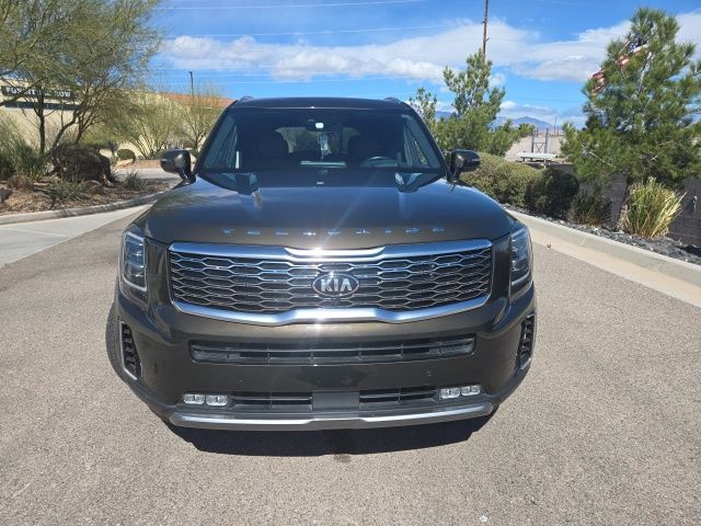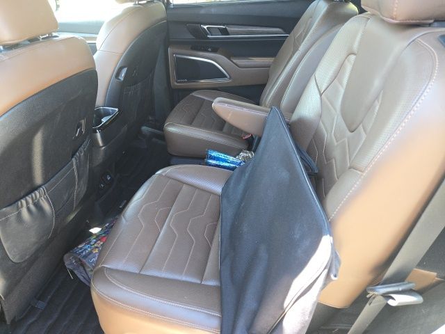 Welcome To Findlay Kia in St. George. All of our vehicles are hand picked and inspected for your peace of mind. Come see us (On the SAVINGS SIDE of the FREEWAY). This Kia Telluride is equipped with the following options: SX Prestige Package (110V Inverter, Heads-Up Display, Heated & Ventilated 2nd Row Seats, Premium Cloth Headliner & Pillar Trim, Premium Nappa Leather Seat Trim, and Rain-Sensing Front Windshield Wipers), Towing Package (Self Leveling Rear Suspension and Tow Hitch w/Harness (TOF)), 10 Speakers, 3rd row seats: split-bench, Air Conditioning, Alloy wheels, AM/FM radio: SiriusXM, Apple CarPlay & Android Auto, Auto High-beam Headlights, Auto-dimming Rear-View mirror, Automatic temperature control, Brake assist, Compass, Delay-off headlights, Electronic Stability Control, Front Bucket Seats, Front Center Armrest, Front dual zone A/C, Front fog lights, Fully automatic headlights, Heated & Ventilated Front Bucket Seats, Heated front seats, Heated steering wheel, Leather Seat Trim, Leather Shift Knob, Leather steering wheel, Memory seat, Navigation System, Outside temperature display, Power driver seat, Power Liftgate, Power passenger seat, Power steering, Power windows, Radio: AM/FM/SIRIUS Premium Audio, Rear air conditioning, Rear audio controls, Rear window defroster, Reclining 3rd row seat, Remote keyless entry, Security system, Smart Key w/ Push Button and Remote Start, Steering wheel mounted audio controls, SX Dune Brown Nappa Leather Seats, Tachometer, Telescoping steering wheel, Tilt steering wheel, Trip computer, Ventilated front seats, Wheels: 7.5" x 20" Black Finish Alloy, 3.648 Axle Ratio, 4-Wheel Disc Brakes, ABS brakes, Bumpers: body-color, Carpeted Floor Mats, Driver door bin, Driver vanity mirror, Dual front impact airbags, Dual front side impact airbags, Emergency communication system: 911 Connect, Four wheel independent suspension, Front anti-roll bar, Front reading lights, Garage door transmitter: HomeLink, Heated door mirrors, Illuminated entry, Knee airbag, Low tire pressure warning, Occupant sensing airbag, Overhead airbag, Overhead console, Panic alarm, Passenger door bin, Passenger vanity mirror, Power door mirrors, Power moonroof, Radio data system, Rear anti-roll bar, Rear reading lights, Rear window wiper, Roof rack: rails only, Speed control, Speed-sensing steering, Split folding rear seat, Spoiler, Traction control, Turn signal indicator mirrors, Variably intermittent wipers, and Wheel Locks.