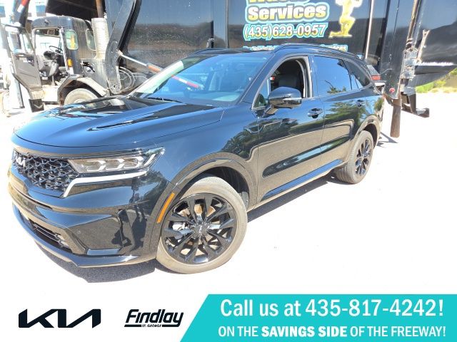 Welcome To Findlay Kia in St. George. All of our vehicles are hand picked and inspected for your peace of mind. Come see us (On the SAVINGS SIDE of the FREEWAY). This Kia Sorento is equipped with the following options: 12 Speakers, 3rd row seats: split-bench, 4-Wheel Disc Brakes, AM/FM radio: SiriusXM, Apple CarPlay & Android Auto, Auto-dimming Rear-View mirror, Automatic temperature control, Brake assist, Front fog lights, Fully automatic headlights, Garage door transmitter: HomeLink, Heated & Ventilated Front Bucket Seats, Heated door mirrors, Heated rear seats, Leather steering wheel, Low tire pressure warning, Memory seat, Navigation System, Outside temperature display, Power door mirrors, Power driver seat, Power Liftgate, Power moonroof, Rain sensing wipers, Smart Key w/ Push Button and Remote Start, Speed control, Speed-sensing steering, Steering wheel mounted audio controls, Telescoping steering wheel, Turn signal indicator mirrors, Wheels: 8.5J x 20" Gloss Black Alloy, 3.316 Axle Ratio, ABS brakes, Air Conditioning, Alloy wheels, Auto High-beam Headlights, Bumpers: body-color, Delay-off headlights, Driver door bin, Driver vanity mirror, Dual front impact airbags, Dual front side impact airbags, Electronic Stability Control, Emergency communication system, Four wheel independent suspension, Front anti-roll bar, Front Bucket Seats, Front Center Armrest, Front dual zone A/C, Front reading lights, Heated front seats, Heated steering wheel, Illuminated entry, Knee airbag, Occupant sensing airbag, Overhead airbag, Overhead console, Panic alarm, Passenger door bin, Passenger vanity mirror, Perforated Genuine Leather Seat Trim, Power passenger seat, Power steering, Power windows, Radio data system, Radio: AM/FM Bose Premium Audio System, Rear air conditioning, Rear anti-roll bar, Rear reading lights, Rear window defroster, Rear window wiper, Remote keyless entry, Roof rack: rails only, Security system, Split folding rear seat, Spoiler, Tachometer, Tilt steering wheel, Traction control, Trip computer, Variably intermittent wipers, and Ventilated front seats.