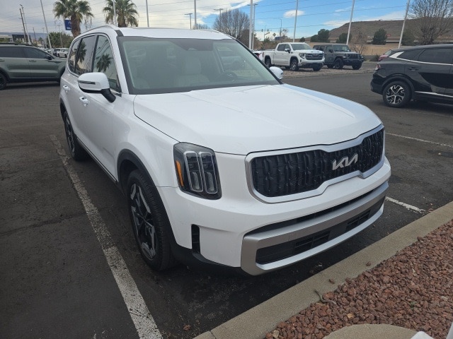 Welcome To Findlay Kia in St. George. All of our vehicles are hand picked and inspected for your peace of mind. Come see us (On the SAVINGS SIDE of the FREEWAY). This Kia Telluride is equipped with the following options: 3rd row seats: split-bench, 6 Speakers, ABS brakes, Alloy wheels, Apple CarPlay & Android Auto, Auto-dimming Rear-View mirror, Automatic temperature control, Brake assist, Compass, Exterior Parking Camera Rear, Fully automatic headlights, Heated & Ventilated Front Bucket Seats, Heated door mirrors, Heated steering wheel, Leather Seat Trim, Leather Shift Knob, Leather steering wheel, Low tire pressure warning, Navigation System, Outside temperature display, Power door mirrors, Power driver seat, Power Liftgate, Power passenger seat, Radio: AM/FM Display Audio System, Remote keyless entry, Security system, Smart Key w/ Push Button and Remote Start, Steering wheel mounted audio controls, Telescoping steering wheel, Turn signal indicator mirrors, 3.648 Axle Ratio, 4-Wheel Disc Brakes, Air Conditioning, AM/FM radio: SiriusXM, Auto High-beam Headlights, Bumpers: body-color, Cargo Tray Seat Back, Carpet Floor Mats, Delay-off headlights, Driver door bin, Driver vanity mirror, Dual front impact airbags, Dual front side impact airbags, Electronic Stability Control, Emergency communication system: 911 Connect, Four wheel independent suspension, Front anti-roll bar, Front Bucket Seats, Front Center Armrest, Front dual zone A/C, Front reading lights, Heated front seats, Illuminated entry, Knee airbag, Occupant sensing airbag, Overhead airbag, Overhead console, Panic alarm, Passenger door bin, Passenger vanity mirror, Power moonroof, Power steering, Power windows, Radio data system, Rear air conditioning, Rear anti-roll bar, Rear audio controls, Rear reading lights, Rear side impact airbag, Rear window defroster, Rear window wiper, Reclining 3rd row seat, Roof rack: rails only, Speed control, Speed-sensing steering, Split folding rear seat, Spoiler, Tachometer, Tilt steering wheel, Traction control, Trip computer, Variably intermittent wipers, and Ventilated front seats.