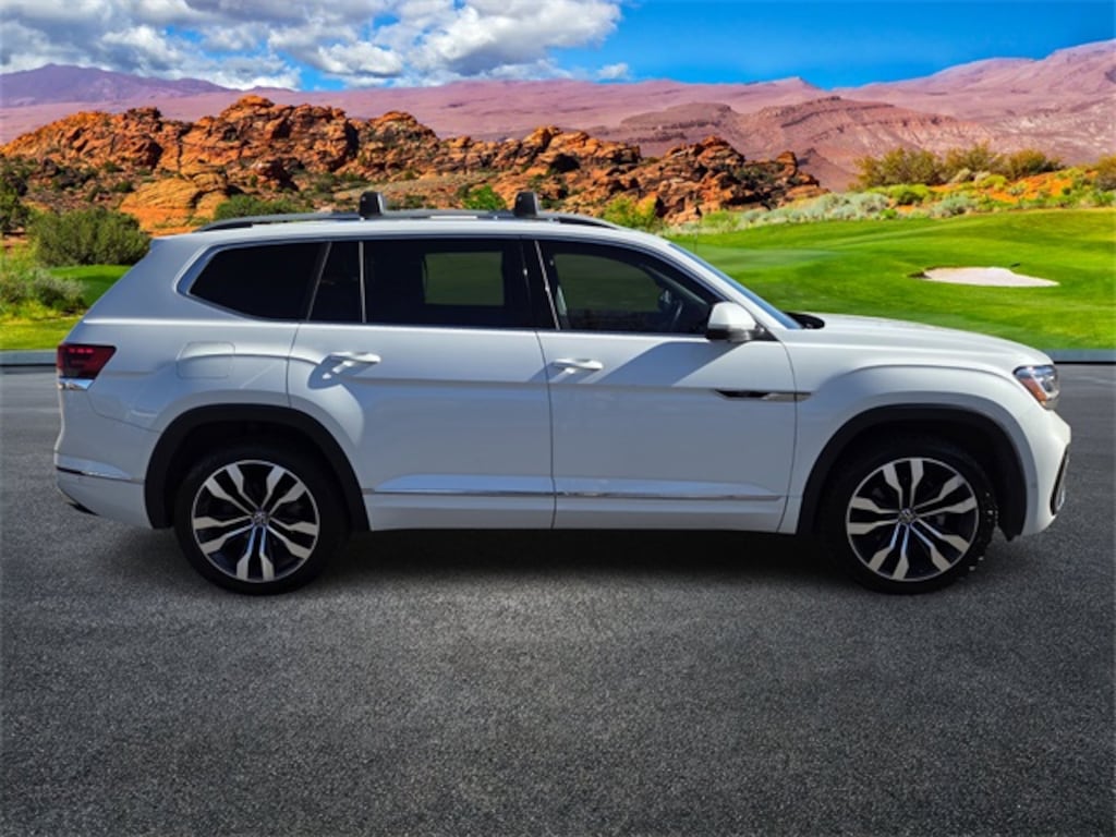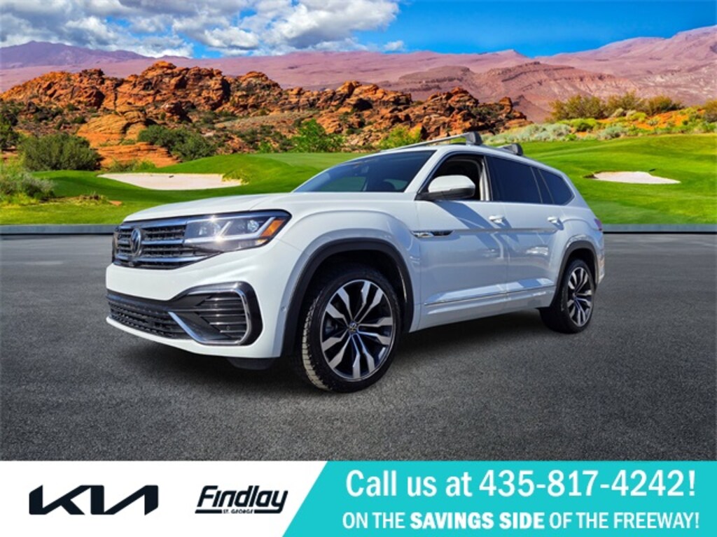 Welcome To Findlay Kia in St. George. All of our vehicles are hand picked and inspected for your peace of mind. Come see us (On the SAVINGS SIDE of the FREEWAY). This Volkswagen Atlas is equipped with the following options: 12 Speakers, 3rd row seats: split-bench, 4-Wheel Disc Brakes, Auto-dimming Rear-View mirror, Automatic temperature control, Brake assist, Bumpers: body-color, Front fog lights, Fully automatic headlights, Heated door mirrors, Heated front seats, Heated rear seats, Heated steering wheel, Htd/Actively Ventilated Comfort Front Sport Seats, Leather Shift Knob, Low tire pressure warning, Navigation System, Outside temperature display, Perforated Vienna Leather Seating Surfaces, Power door mirrors, Power Liftgate, Radio: MIB3 Discover Media w/8" Touchscreen Nav, Rain sensing wipers, Remote keyless entry, Steering wheel mounted audio controls, Telescoping steering wheel, Turn signal indicator mirrors, Ventilated front seats, Wheels: 21" 2-Tone Machined Alloy, 3.60 Axle Ratio, ABS brakes, Air Conditioning, Alloy wheels, AM/FM radio: SiriusXM with 360L, Auto High-beam Headlights, Compass, Delay-off headlights, Driver door bin, Driver vanity mirror, Dual front impact airbags, Dual front side impact airbags, Electronic Stability Control, Emergency communication system, Four wheel independent suspension, Front anti-roll bar, Front Bucket Seats, Front Center Armrest, Front dual zone A/C, Front reading lights, Illuminated entry, Memory seat, Occupant sensing airbag, Overhead airbag, Overhead console, Panic alarm, Passenger door bin, Passenger vanity mirror, Power driver seat, Power moonroof: Panoramic, Power passenger seat, Power steering, Power windows, Radio data system, Rear air conditioning, Rear anti-roll bar, Rear audio controls, Rear reading lights, Rear seat center armrest, Rear window defroster, Rear window wiper, Roof rack: rails only, Security system, Speed control, Speed-sensing steering, Split folding rear seat, Spoiler, Sport steering wheel, Standard Suspension, Tachometer, Tilt steering wheel, Traction control, Trip computer, and Variably intermittent wipers.