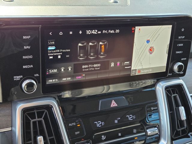 Welcome To Findlay Kia in St. George. All of our vehicles are hand picked and inspected for your peace of mind. Come see us (On the SAVINGS SIDE of the FREEWAY). This Kia Sorento is equipped with the following options: 12 Speakers, 3rd row seats: split-bench, ABS brakes, Apple CarPlay & Android Auto, Auto-dimming Rear-View mirror, Automatic temperature control, Brake assist, Front fog lights, Fully automatic headlights, Heated & Ventilated Front Bucket Seats, Heated door mirrors, Heated front seats, Heated rear seats, Heated steering wheel, Leather steering wheel, Low tire pressure warning, Memory seat, Navigation System, Outside temperature display, Power Liftgate, Radio: AM/FM Bose Premium Audio System, Smart Key w/ Push Button and Remote Start, Speed control, Split folding rear seat, Steering wheel mounted audio controls, Telescoping steering wheel, Turn signal indicator mirrors, Ventilated front seats, Wheels: 8.5J x 20" Matte Gray Alloy, 3.316 Axle Ratio, 4-Wheel Disc Brakes, Air Conditioning, Alloy wheels, AM/FM radio: SiriusXM, Auto High-beam Headlights, Bumpers: body-color, Carpeted Floor Mats, Delay-off headlights, Driver door bin, Driver vanity mirror, Dual front impact airbags, Dual front side impact airbags, Electronic Stability Control, Emergency communication system: UVO Link, Four wheel independent suspension, Front anti-roll bar, Front Bucket Seats, Front Center Armrest, Front dual zone A/C, Front reading lights, Illuminated entry, Knee airbag, Occupant sensing airbag, Overhead airbag, Overhead console, Panic alarm, Passenger door bin, Passenger vanity mirror, Perforated Genuine Leather Seat Trim, Power door mirrors, Power driver seat, Power moonroof, Power passenger seat, Power steering, Power windows, Radio data system, Rear air conditioning, Rear anti-roll bar, Rear reading lights, Rear window defroster, Rear window wiper, Remote keyless entry, Roof rack: rails only, Security system, Speed-sensing steering, Spoiler, Tachometer, Tilt steering wheel, Traction control, Trip computer, and Variably intermittent wipers.